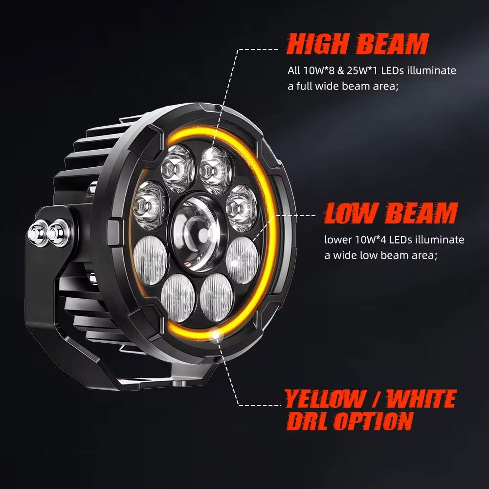 High/Low Beam + DRL Blanc/Amber, IP68, Kit Plug & Ride 9–32V